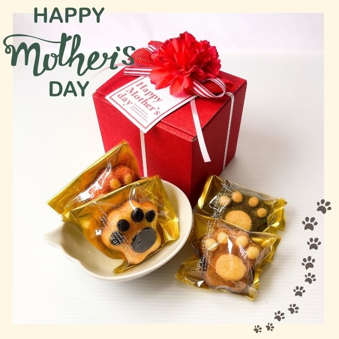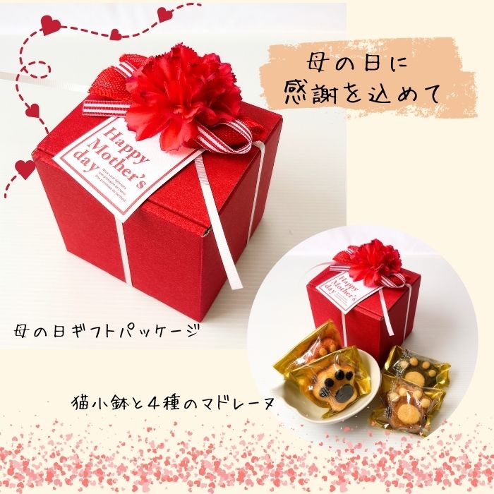 大人気の肉球マドレーヌと猫小鉢のセット! 母の日限定のキュートなラッピングです。