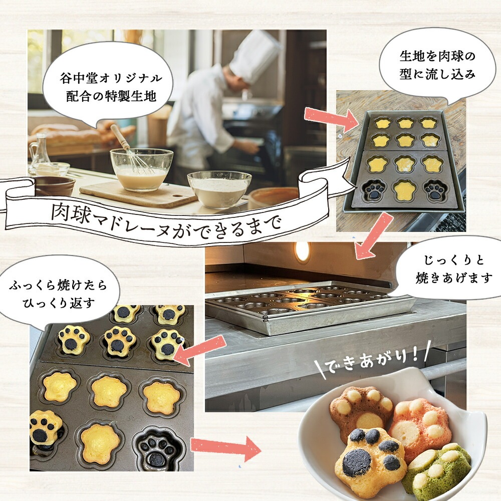 あまりの可愛いさに食べるのがもったいない!? 肉球マドレーヌは形だけじゃなく味にもこだわっておりますので ぜひご賞味ください。